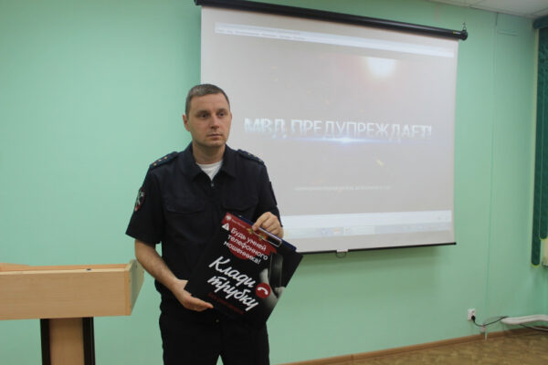 В начале встречи представитель пресс-службы МВД по Республике Коми Игорь Игнатов напомнил слушателям об основных схемах обмана, используемых онлайн-мошенниками. Полицейский привел примеры реальных хтщений и пояснил, как необходимо действовать в той или иной ситуации.