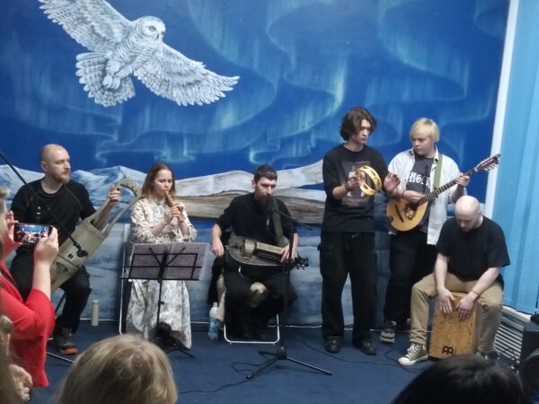 В зале белой совы выступала группа «FROSTSCOLD». Музыкальной направленностью были средневековые песни и баллады о подвигах героев. В качестве инструментов использовали аутентичное обрудование, благодаря чему выступление получалось по-особенному запоминающимися. Эта площадка также собрала в своих стенах немало слушателей.