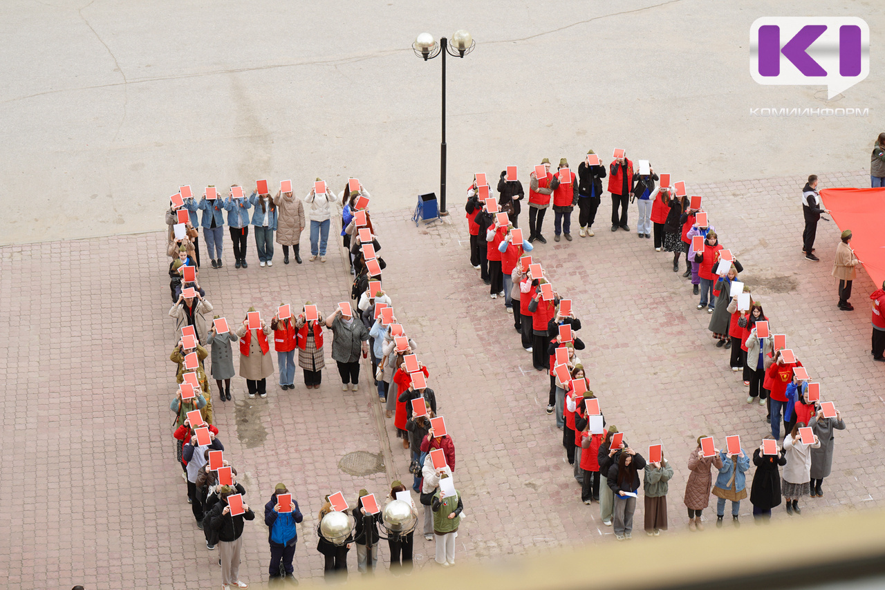 На площадке возле «Дома быта» в Сыктывкаре прошла масштабная молодежная акция, посвященная 80-летию Великой Победы. Участники мероприятия выстроились в форме числа «80», создав яркий символ праздника.