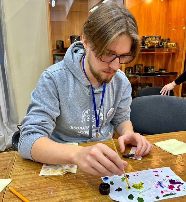 Более полусотни уникальных брошей, изготовленных в технике лаковых миниатюр, в эти дни разосланы по всей стране. Их адресатами стали студенты и начинающие журналисты, ставшие победителями девятого сезона Школы межэтнической журналистики. В рамках этноэкспедиции 1 декабря 2023 года они побывали в подмосковном селе Федоскино. Среди них были и три студента Сыктывкарского Государственного Университета им. Питирима Сорокина – Родион Астафьев, Екатерина Шергина и Софья Курилина.