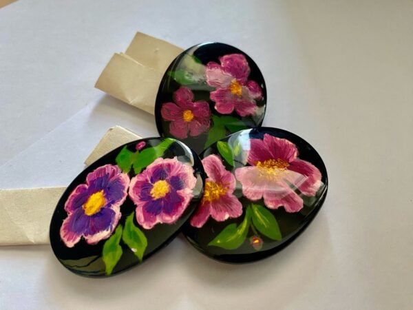 Такой большой разрыв между изготовлением и доставкой брошей связан со сложной технологией их изготовления и большими сроками высыхания лаковых красок.