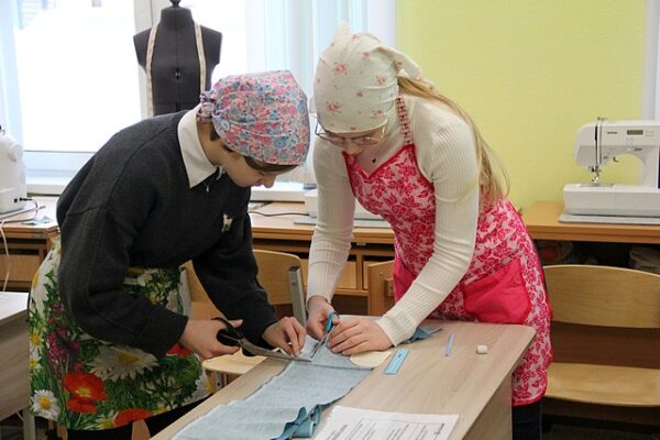 Кабинет технологии для девочек оборудован новыми швейными машинами, есть манекены и зона для приготовления пищи. Школьниц обучают домоводству: моделирование и конструирование выкроек, шитье, готовка, сервировка и даже карвинг — художественная резка овощей и фруктов. Эти уроки помогают им развивать творческий потенциал и приобретать навыки, которые пригодятся в будущем.
