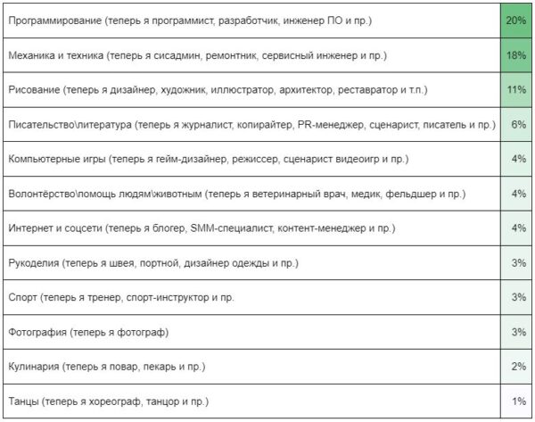 Среди тех, у кого работа родилась из хобби чаще всего люди увлекались: