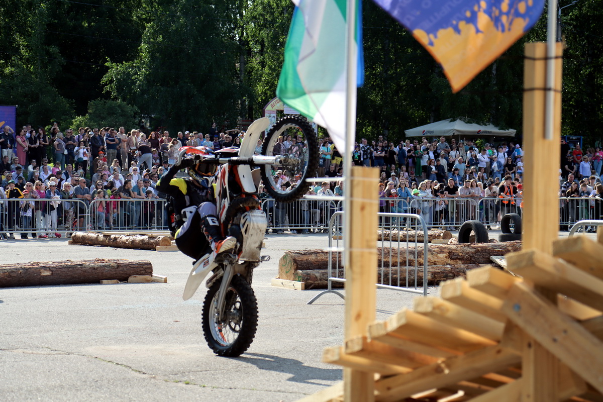На «сковородке» в Кировском парке развернулось зрелище, на которое собрался почти весь город — соревнования эндуро, в рамках которых мотоциклисты, в том числе приглашенные гости, экстремально преодолевали специальную спортивную трассу, начиненную препятствиями. Победители определялись на глазах сыктывкарцев.