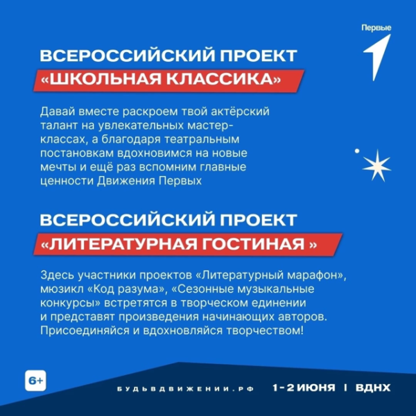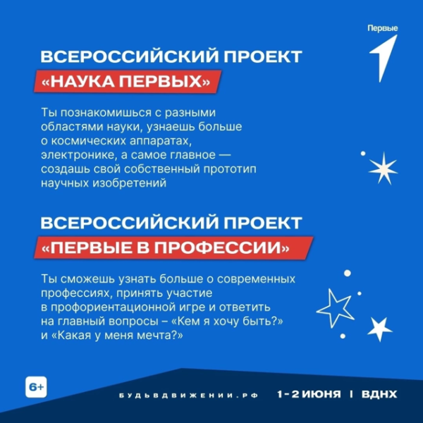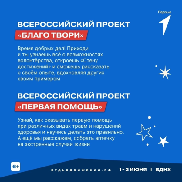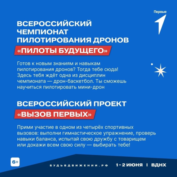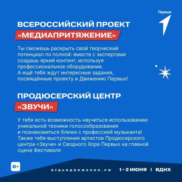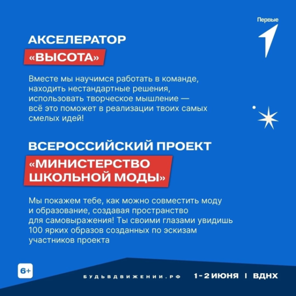 Фестиваль Движения Первых продлится с 1 по 2 июня. Главной темой праздника станет мечта и возможность каждого ребенка в России воплотить ее в России — стране возможностей. Благодаря Движению Первых мечты школьников и студентов превращаются в реальные достижения, которые приносят пользу детям, обществу и стране. Первые знают, что действия и упорный труд обязательно приведут к реализации своей мечты.