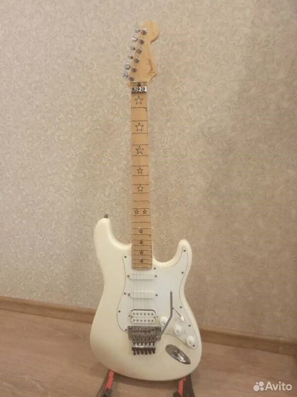 Первый эксклюзивный лот продают за 680 тысяч рублей. Гитара Fendеr Riсhiе Sаmbоra Strаtoсаster 1996 года из США. Эта «звездная» модель производилась всего 6 лет с 1993-1999г. и является ограниченной серией, выпущенной к юбилею знаменитого американского бренда Fendеr. По словам владельца объявления гитара оригинальная и находится в прекрасном состоянии.